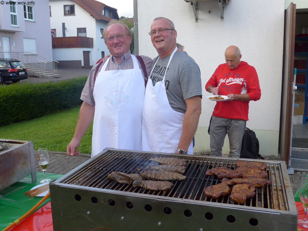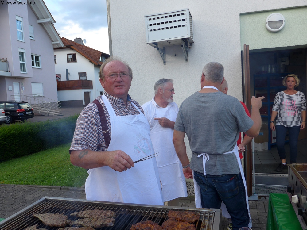 Und es gab etwas Neues auf der "Speisekarte" – Kartoffelpuffer. Im schwimmenden Fett goldbraun, knusprig gebraten, für die Brigittediät absolut ungeeignet, aber sooo gut. Die Steaks waren zart und schmackhaft und die Bratwürste goldbraun. Die "Grillmeister" Wolfgang Stein und Jürgen Schneider verstehen wohl was von der Sache.