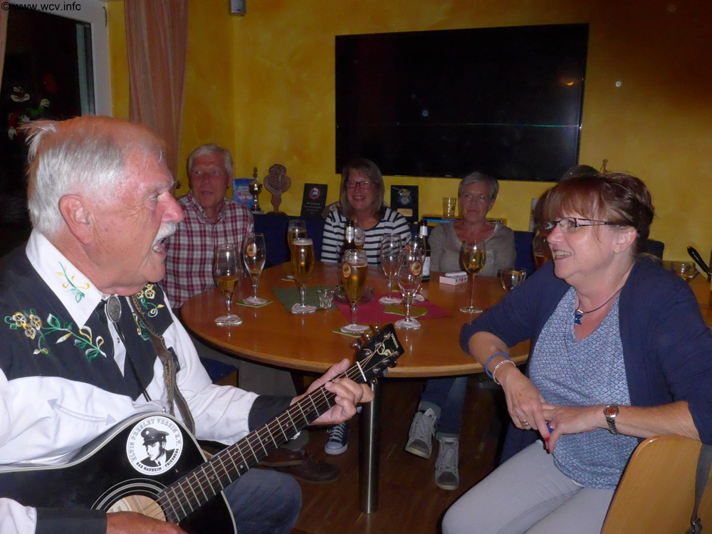 Peter Blaumeiser hatte seine Gitarre mitgebracht und animierte mit alten Evergreens erfolgreich zum Mitsingen.